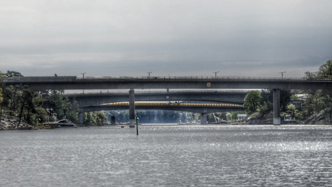 Vägbro, tunnelbanebro och roslagsbanebro, ett riktigt bromuseum precis som vid Skanstull