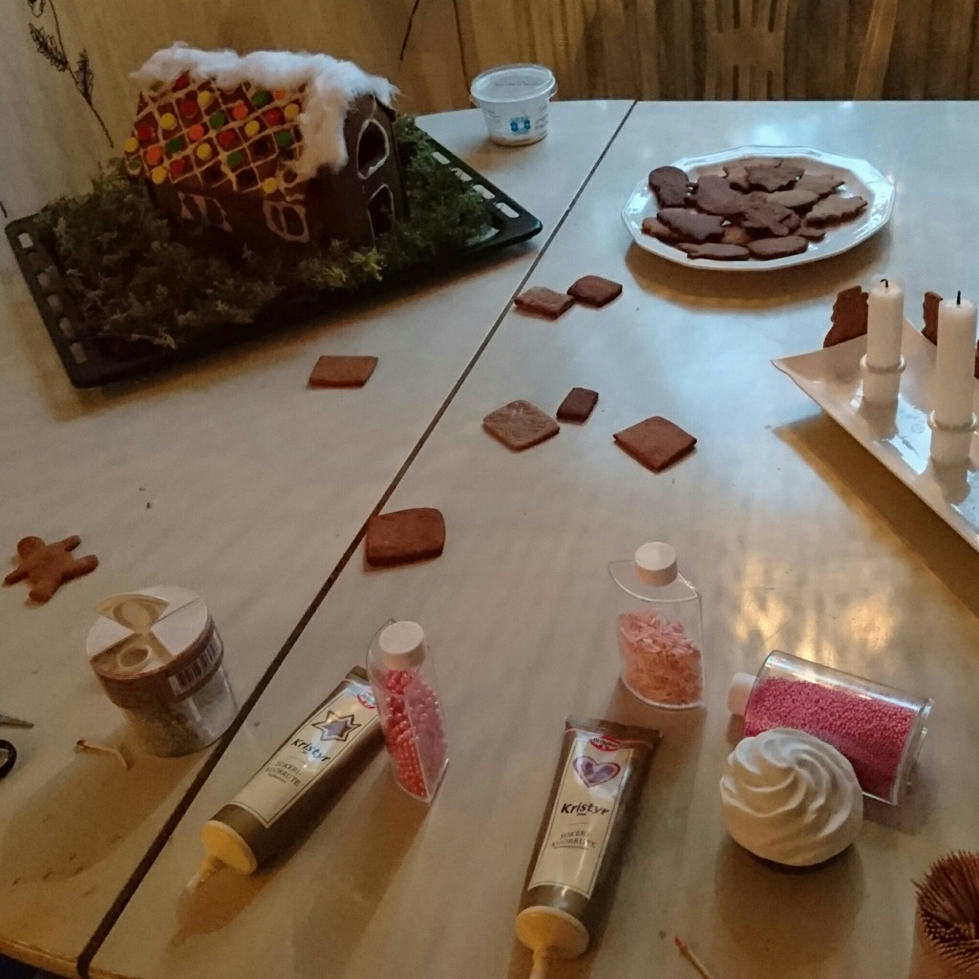 Saint Lucy’s Sunday December 15, 2015 ~ Instaology ~ 8 Comments The back of a Saint Lucy’s choir and Gingerbread House construction on the kitchen table. Ordinary day, 11 days before Christmas. Cellphone pics and half hearted edit. Like Loading...