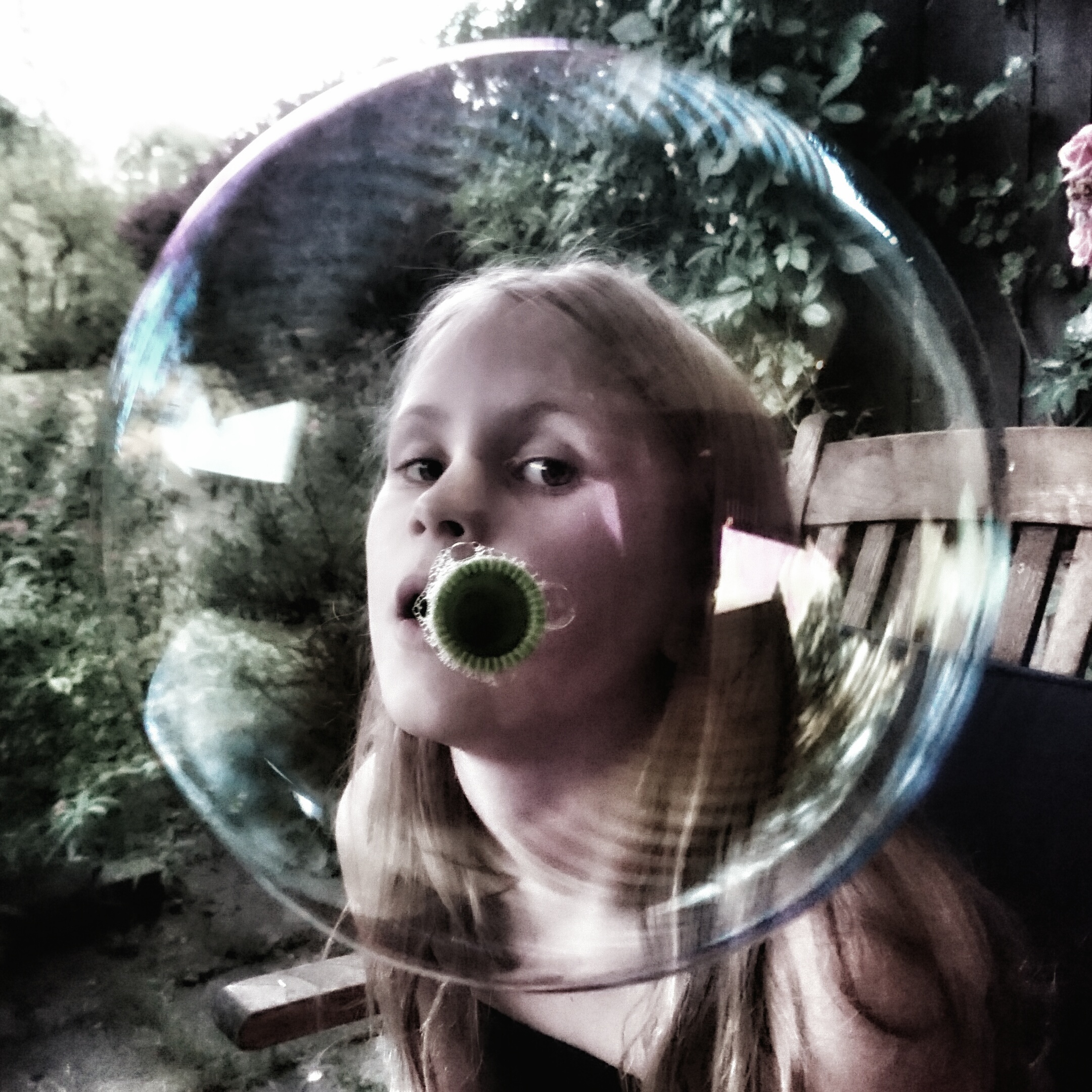 This is my daughter, blowing soap bubbles – a very temporary joy.