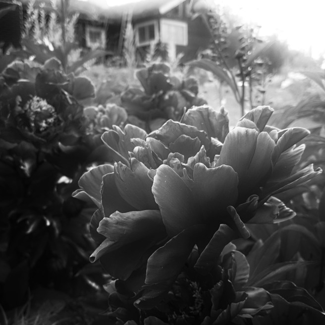 Last time I worked with this one I highlighted the fiery red-colour in the flower. By doing so the house almost disappeared and the flower looked huge.