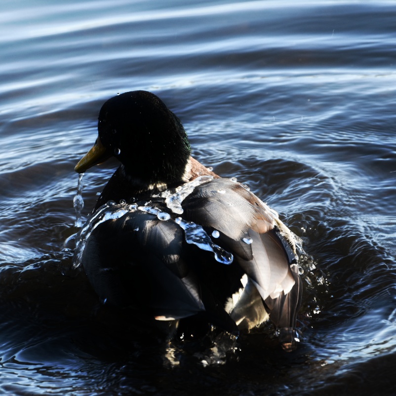 I got a close up moment with a bathing mallard today.