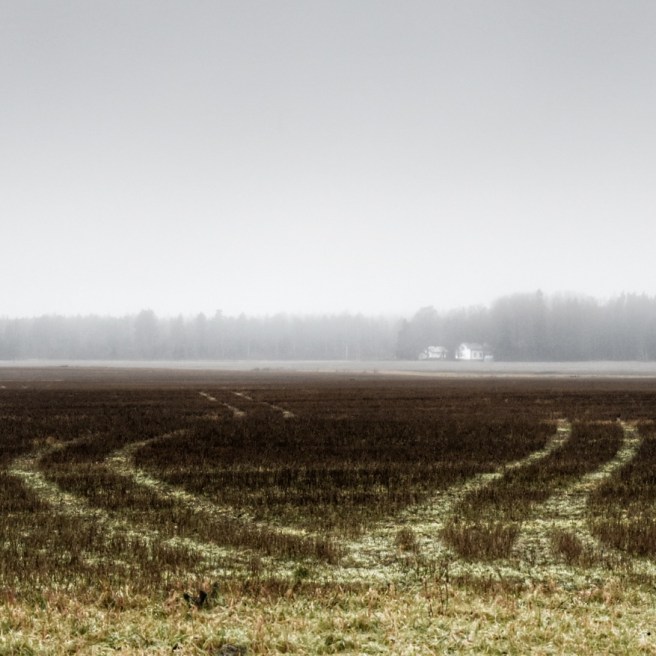 Svårt det här med raka linjer – eller snarare brisen på sådana. Jag tycker bilder lätt blir oharmoniska när det finns flera “osynkade plan”. Ska man justera bilden efter det gistna huset? Eller de lutande träden? Eller telefonledningen som går från låg stolpe till hög? Eller horisonten som knappt syns i bakgrunden?