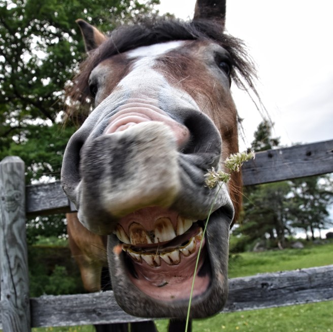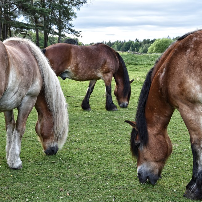 Stora hästar med stora hjärtan och mular. Det var inte helt enkelt att både mata och fotografera, samtidigt. Men vi fann varandra. Han tyckte att det var väldigt intressant att jag matade honom med endast ett strå åt gången. Det fanns faktiskt drivor med långt gräs att beta av, men valde att dra i mina strån, ett efter ett.