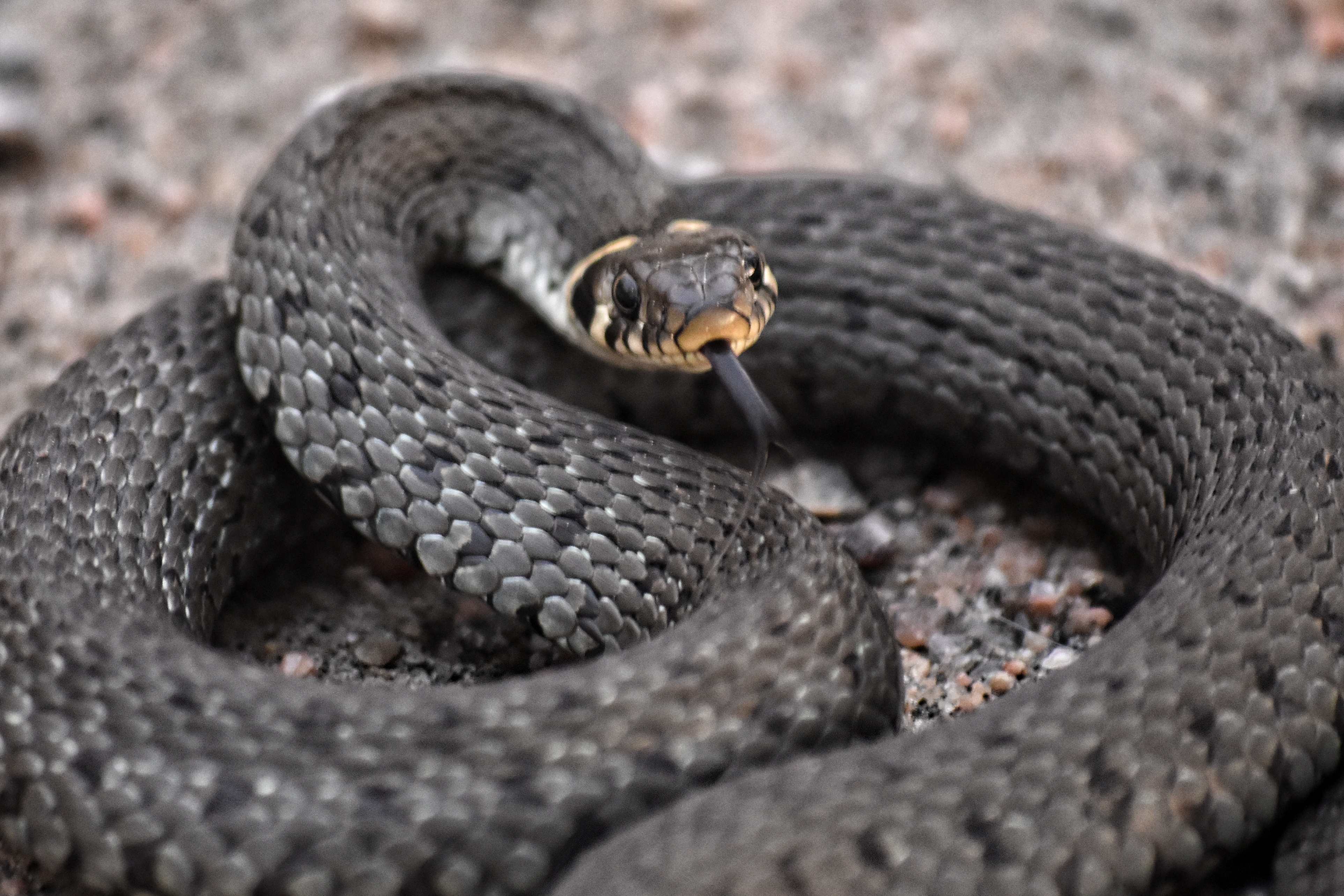 This time a Grass snake. When I turned on my towel it made a U-turn (just as the Viper yesterday) and dived into the sea. He was 20 centimeters from my nose. I think that is called “Close Encounter”.