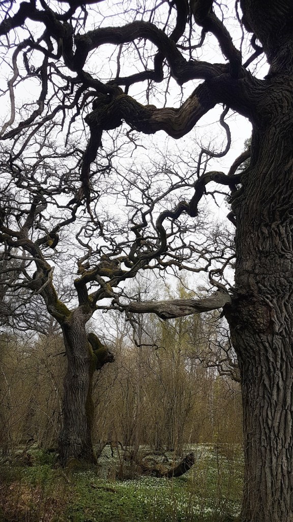 Jag upptäckte också ett nytt ljud ute i naturen: mycket dova snärtar från marken. Det lät ungefär som isar som sjunger om vintern. Länge stod jag där ute i skogen och funderade över vad det kunde vara. Ni vet, jag var så där himla mindful och “ett med naturen” man kan vara ibland; jag njöt av det spektakulära skådespelet av trädkronor som vajade i vinden, stammar som lutade och gneds mot varandra och de spännande ljuden… och då kom jag på vad det var som lät. Det var antagligen trädrötter som gav vika för stormbyarna.