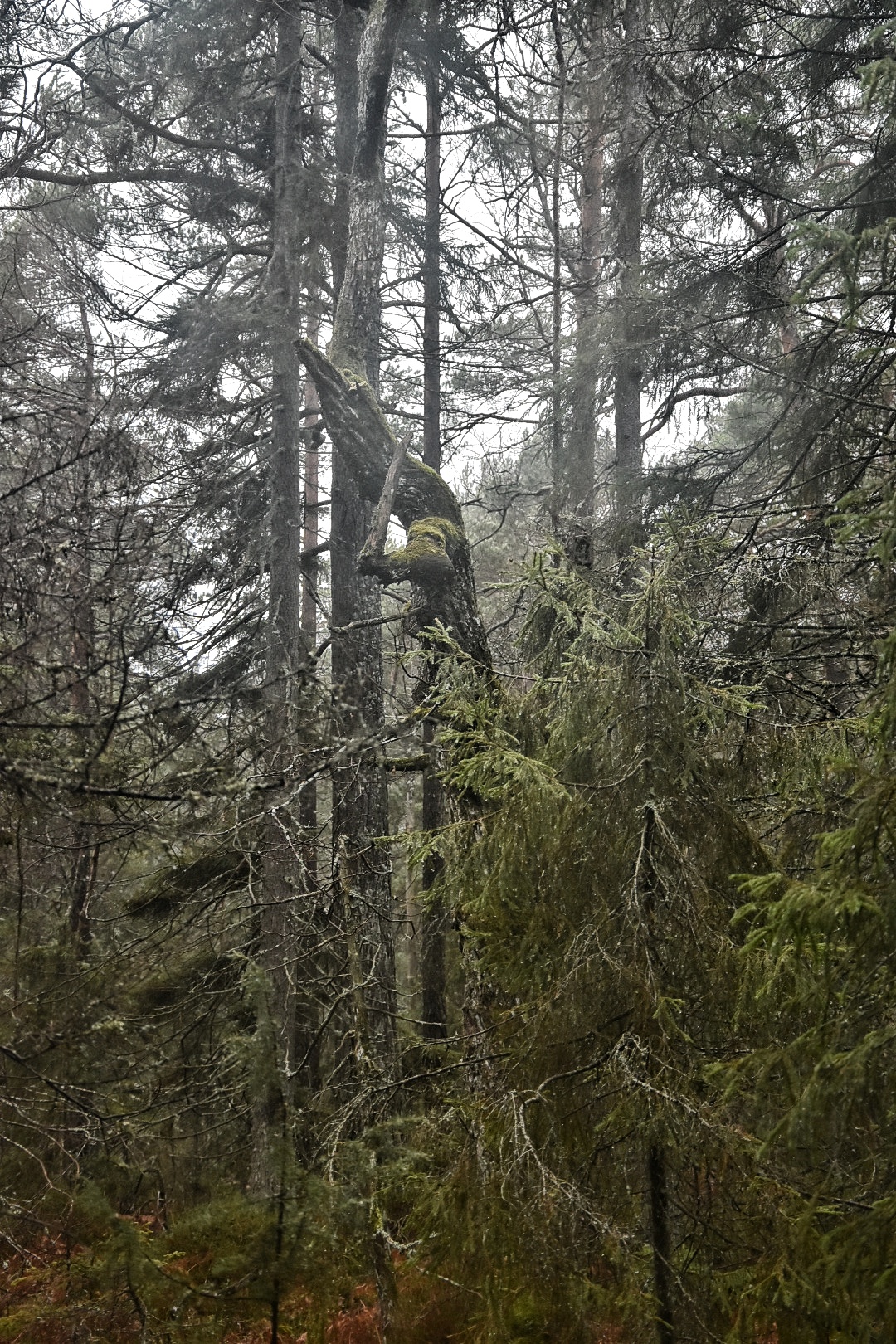 De dämpade ljuden, vattendroppar som knäpper mot jackan och doft av skog. Hackspettens trummade hörs inte långt – det är noll resonans i de vattendränkta torrakorna.